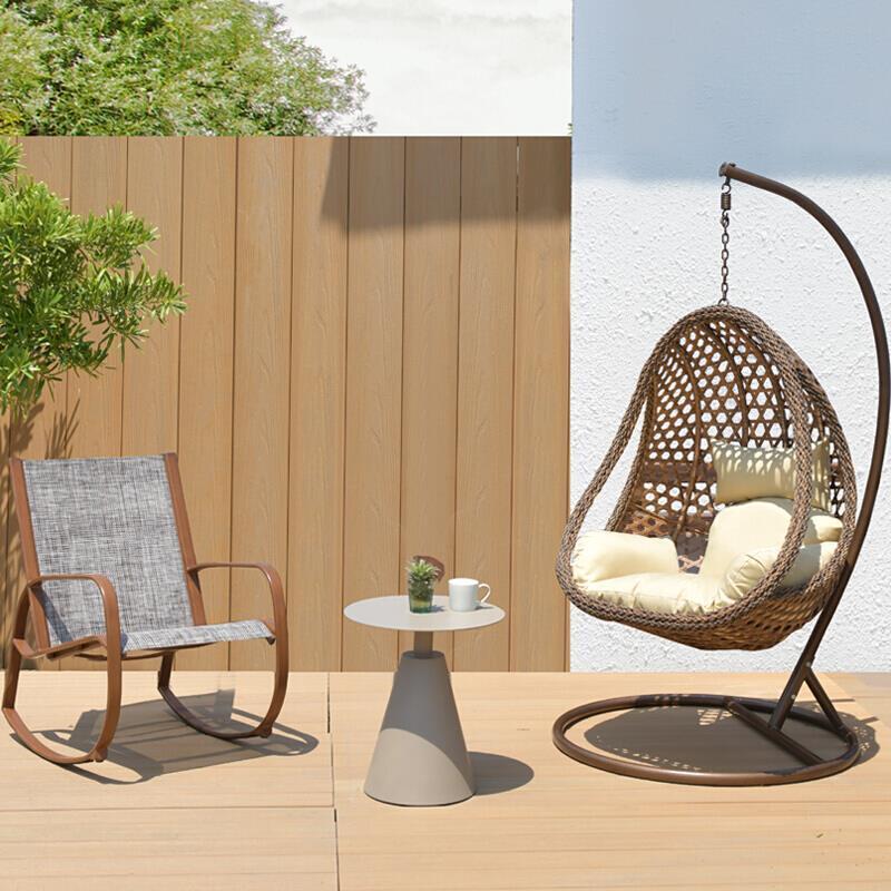 Hanging Basket Rattan Chair Rocking Chair Swing Family Hammock Indoor Balcony Drop Hanging Basket Brown + Tea Table + Chair Thickened And Enlarged Suspender