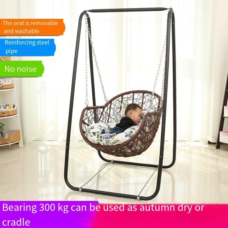 Hanging Basket Rattan Chair Single Child Swing Indoor And Outdoor Household Rocking Balcony Orchid Bird's Nest Rocking Chair Tesiyou Reinforced White (with Cushion + Carpet)