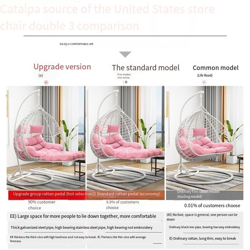 Hanging Chair Household Balcony Basket Rattan Chair Indoor Room Dormitory Swing Rocking Outdoor Double Lazy Hammock European Bird's Nest Drop Chair