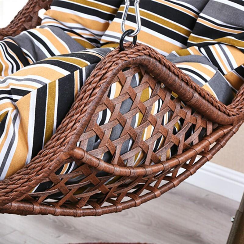 Hanging Chair Indoor Swing Reclining Basket Dormitory Rattan Bird's Nest Single Rocking Chair Hammock B Coffee Ribbon Armrest Rattan + Cushion + Carpet