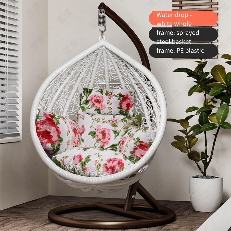 Hanging Chair Outdoor Swing Basket Cane Household Leisure Lazy Indoor Balcony Bird's Nest Hammock Cradle Rocking Luxury White (bold Cane) With Pillow
