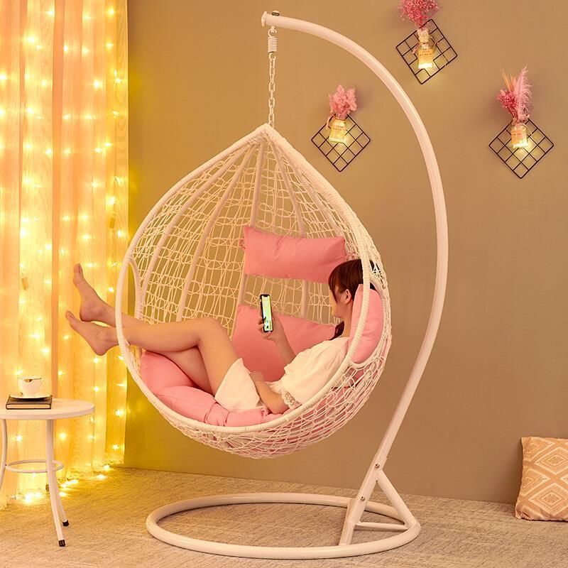 Hanging Chair Swing Hanging Basket Rattan Chair Household Leisure Lazy Indoor Balcony Bird's Nest Chair Single White (Enlarged Version With Armrest)