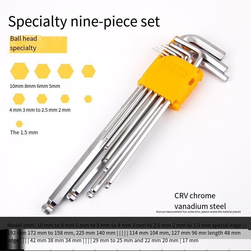 Hexagon Wrench Set Hexagon Box M-shaped Hexagon Screw Driver Hexagon Wrench Tool Extra Long Ball Head 9-piece Set