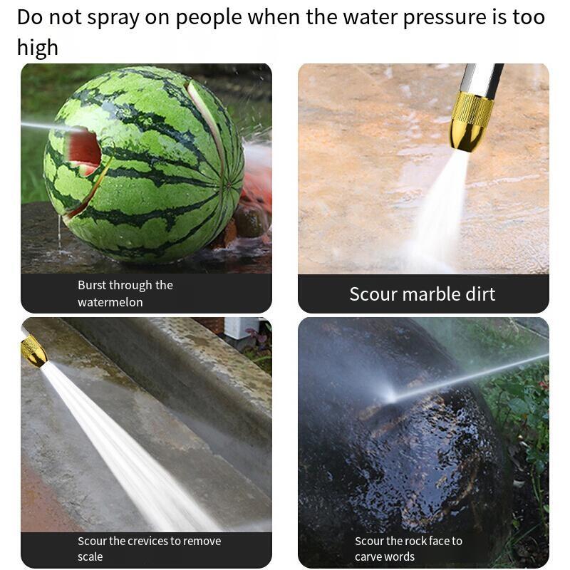【High water pressure is building up】Pressurized spear head, considerable water pressure, far jet.
