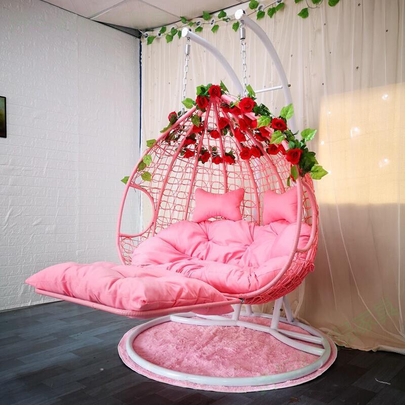 Household Hanging Basket Rattan Chair Indoor Cradle Chair Orchid Rocking Chair Lazy Person Cradle Hanging Chair Single White (thin Rattan, No Armrest)