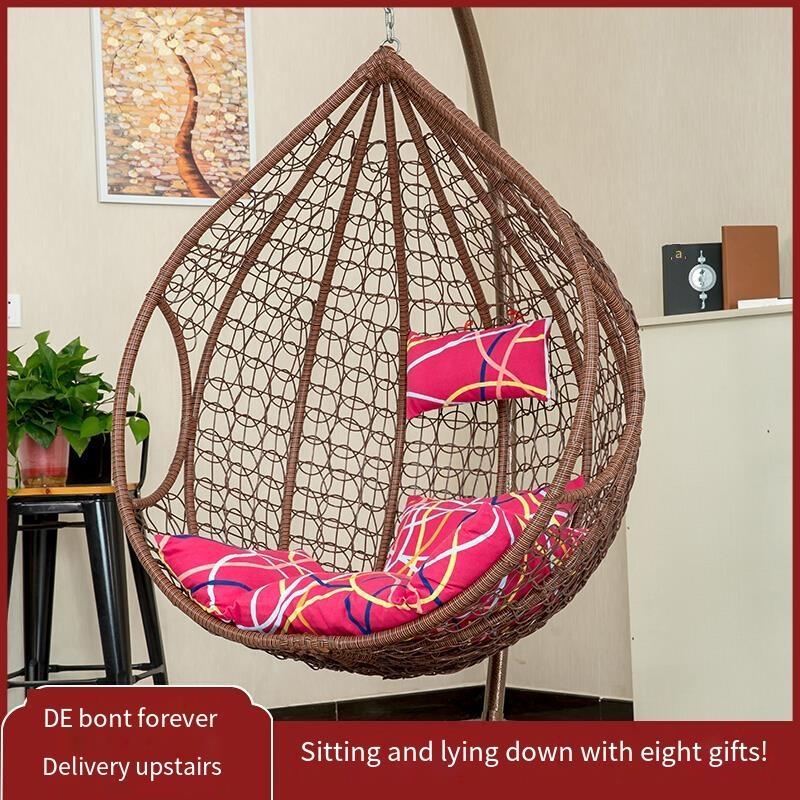 Indoor Hanging Chair Rattan Chair Swing Outdoor Rocking Chair Household Lazy Hammock Leisure Rocking Chair Single Basket Without Pole Base