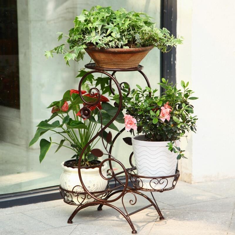 Iron Flower Rack Assembly Free Multi-storey Indoor Balcony Living Room Floor Hemp Flower Pot Rack Bronze