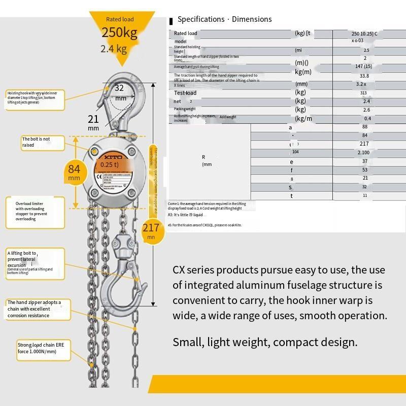 Japan Imported Cx003 Chain Aluminum Alloy Anti-corrosion Chain Hoist Lifting Tool 0.25t, Lift 1.2m