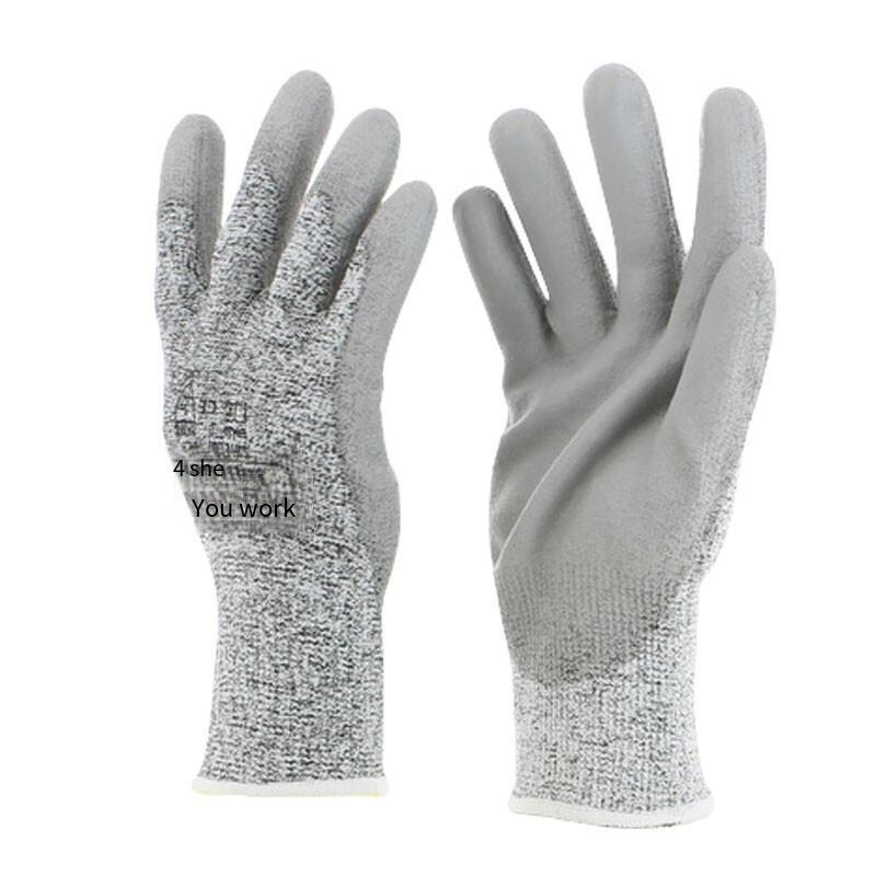 6 Pieces Safety Jogger Labor Protection Grade 5 Anti Cutting Pu Coating Palm Dipping Rubber Handling Mechanical Gloves Industrial Wear Resistant Anti Cutting Superfine Fiber Breathable Shield