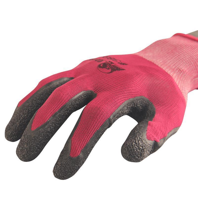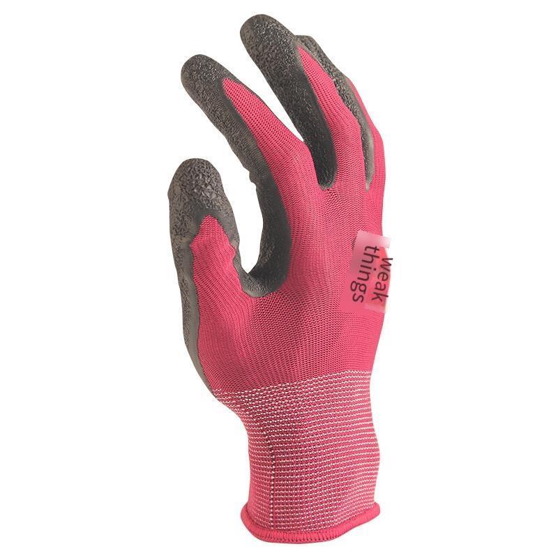 Labor Protection Gloves Wrinkle Latex Gloves Coated With Adhesive Skid Resistant Wear-Resistant Breathable Gloves 12 Pairs Purple Red Free Size