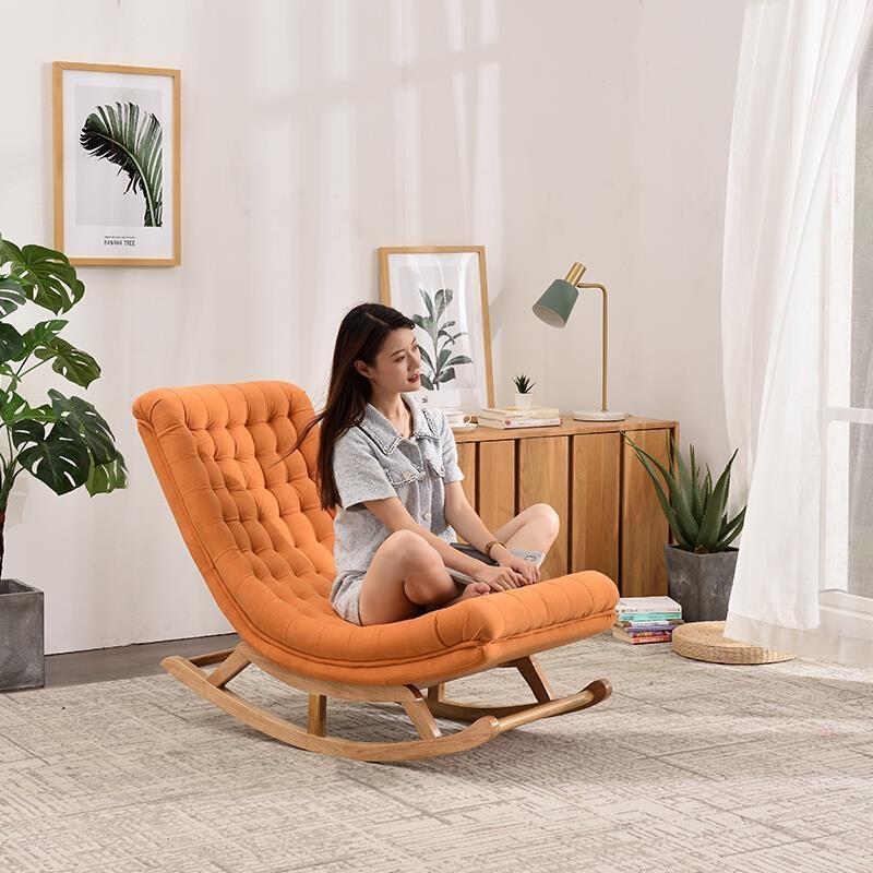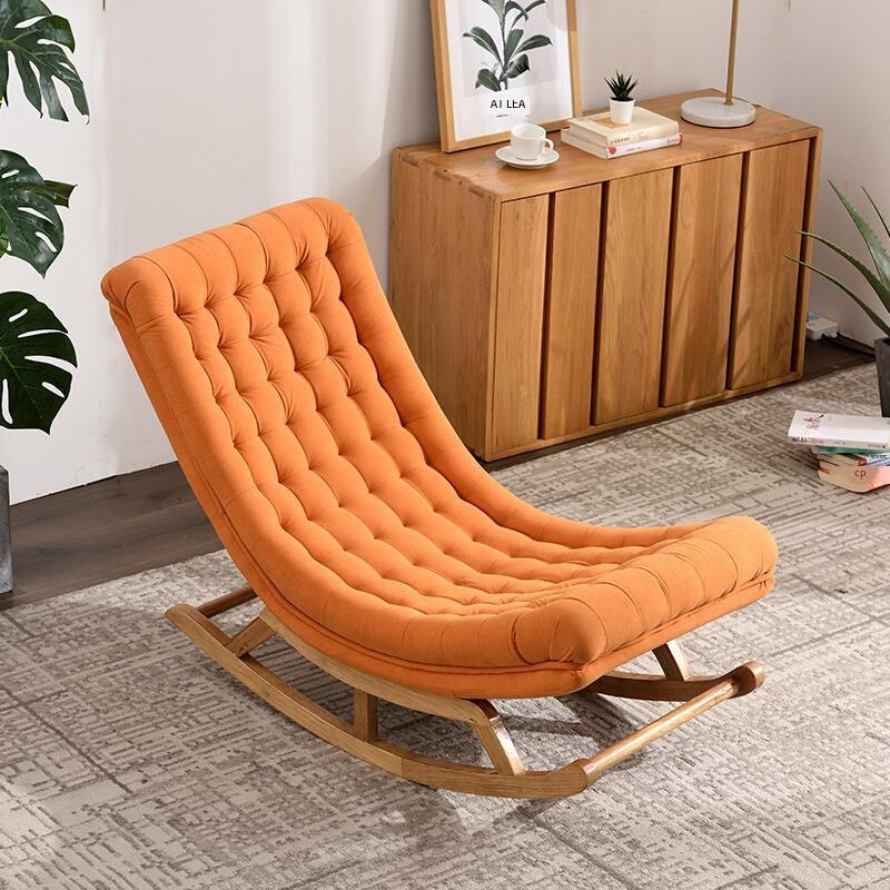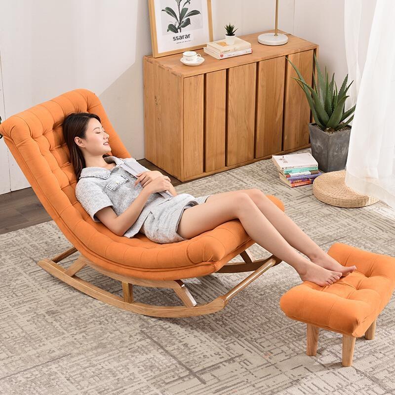Lazy Sofa Single Nordic Rocking Chair Recliner Adult Nap Home Leisure Living Room Leisure Chair Orange Chenille + Footstool