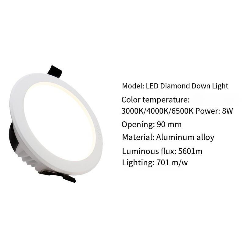 Led Downlight 3.5 8w Warm Light 3000k Hole Size 9cm Diamond Series