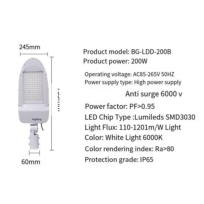 LED Street Lamp Cap 200W White Light IP65 Street Light Outdoor Waterproof Lighting for Garden Road Street Yard Lighting