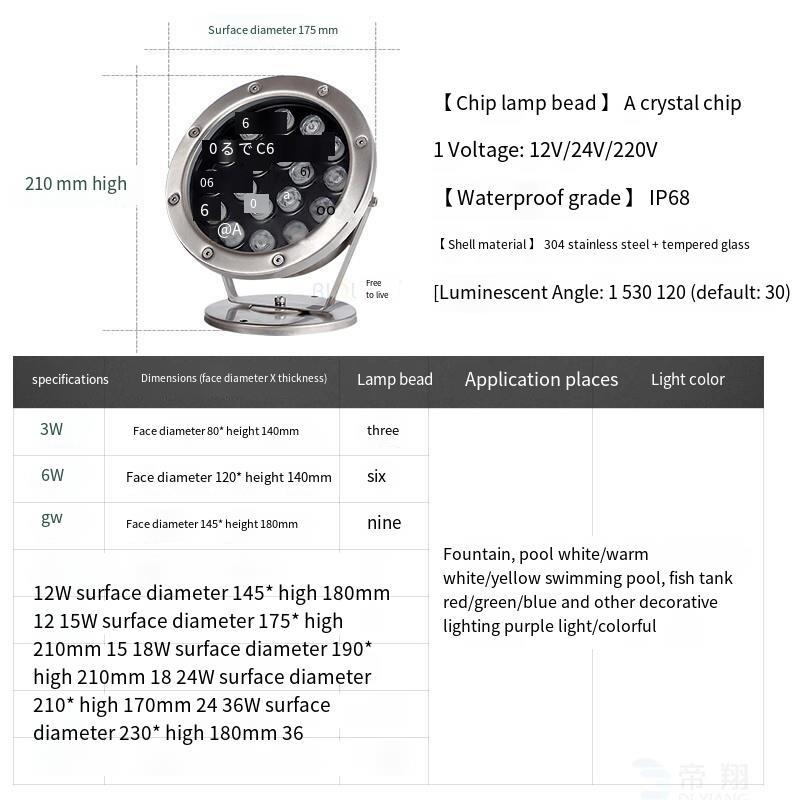LED Underwater Lamp Pool Lamp Fountain Lamp Waterproof Underwater Spotlight Fish Pond Lamp Stainless Steel Underwater Lamp 12w