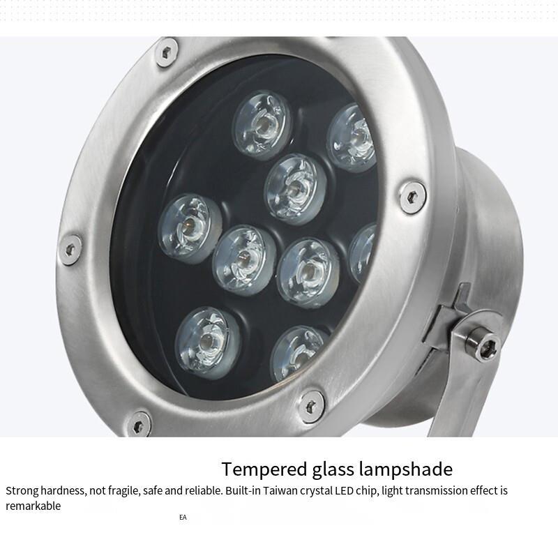 LED Underwater Light Fish Pool Light Stainless Steel Tempered Glass Pool Light Outdoor Waterproof Colorful Color Changing Fountain Light 3w