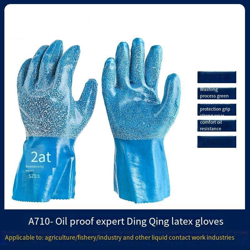 Lengthened Oil Proof Gloves Chemical Proof Gloves Acid And Alkali Resistant Abrasion Resistant Protection Labor Gloves L-Size Single Pair