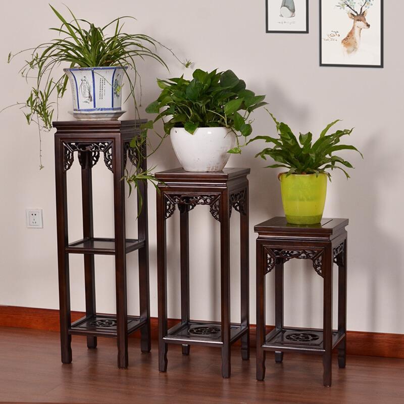 Ming And Qing Classical Chinese Square 1m High Flower Rack Solid Wood Living Room Balcony Elm Solid Wood Multi-layer Flower Rack Lvluoqi Stone Vase Flower Rack Dragon Square 25 * 25 * 60 Chestnut Red