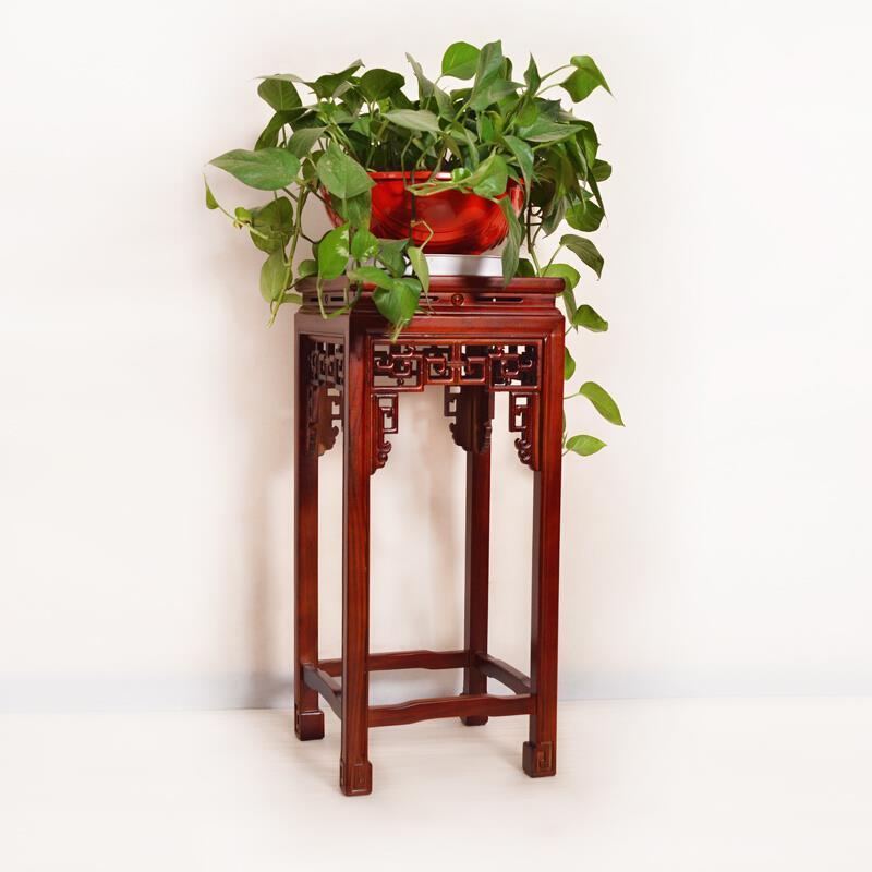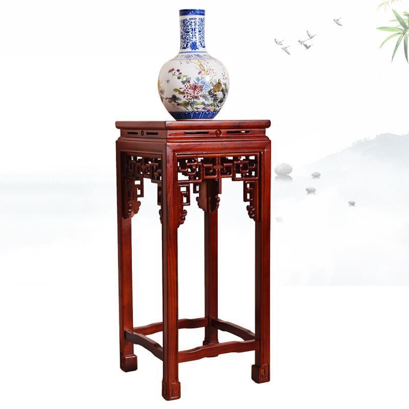 Ming And Qing Dynasties Antique Classical Hollowed Out Chinese Solid Wood Elm Square Flower Rack Low Flower Rack Floor Rack Multi-layer Vase Rack Surface 33.5, Height 68 Cm