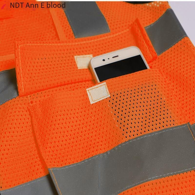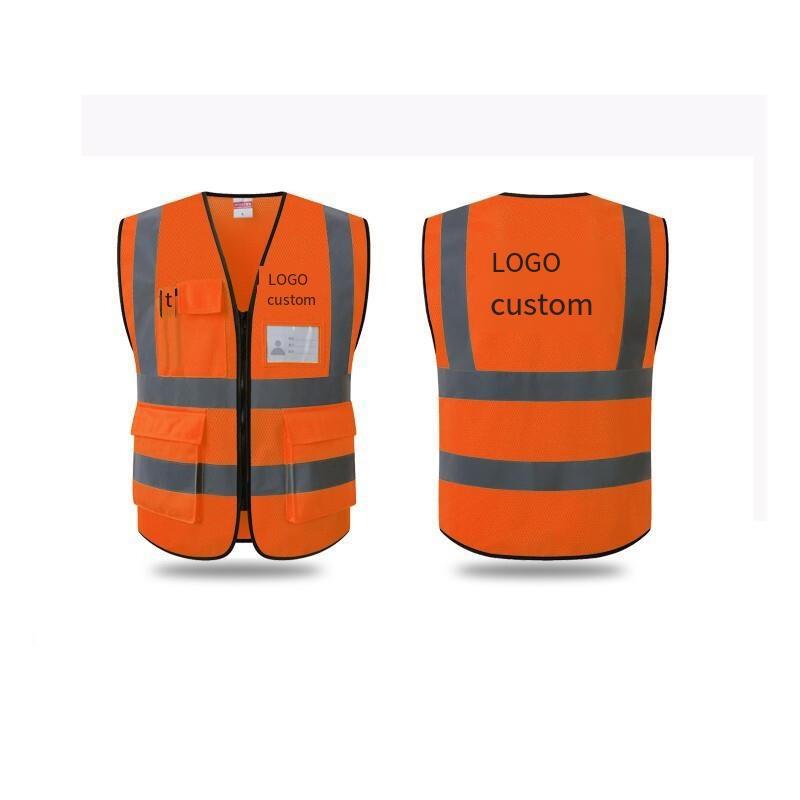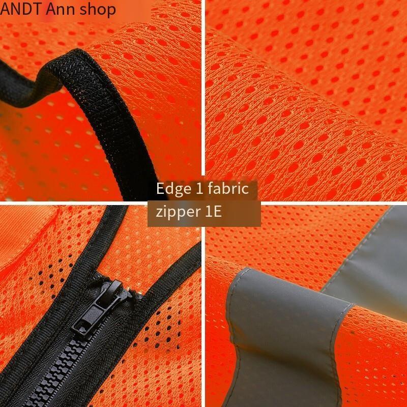 Multi-Pocket Reflective Vest with Zipper Breathable Mesh Fabric Safety Vest for Construction Engineering Traffic Safety Warning Clothes - Orange