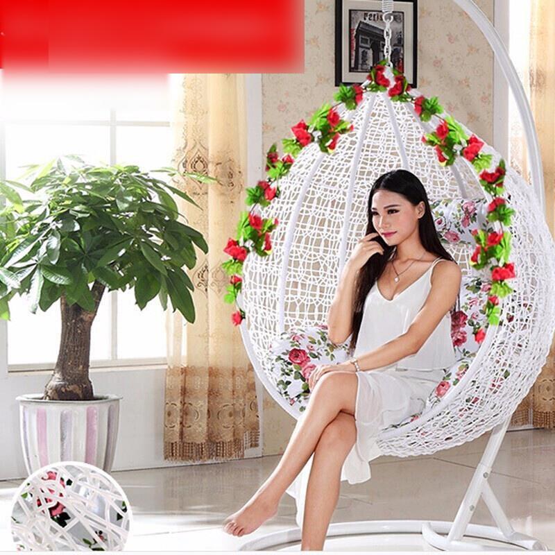 Net Red Hanging Basket Rattan Chair Balcony Outdoor Dormitory Cradle Leisure Hammock Adult Rocking Lazy Sunshine Reclining Bird's Nest Swing Single White [luxury]