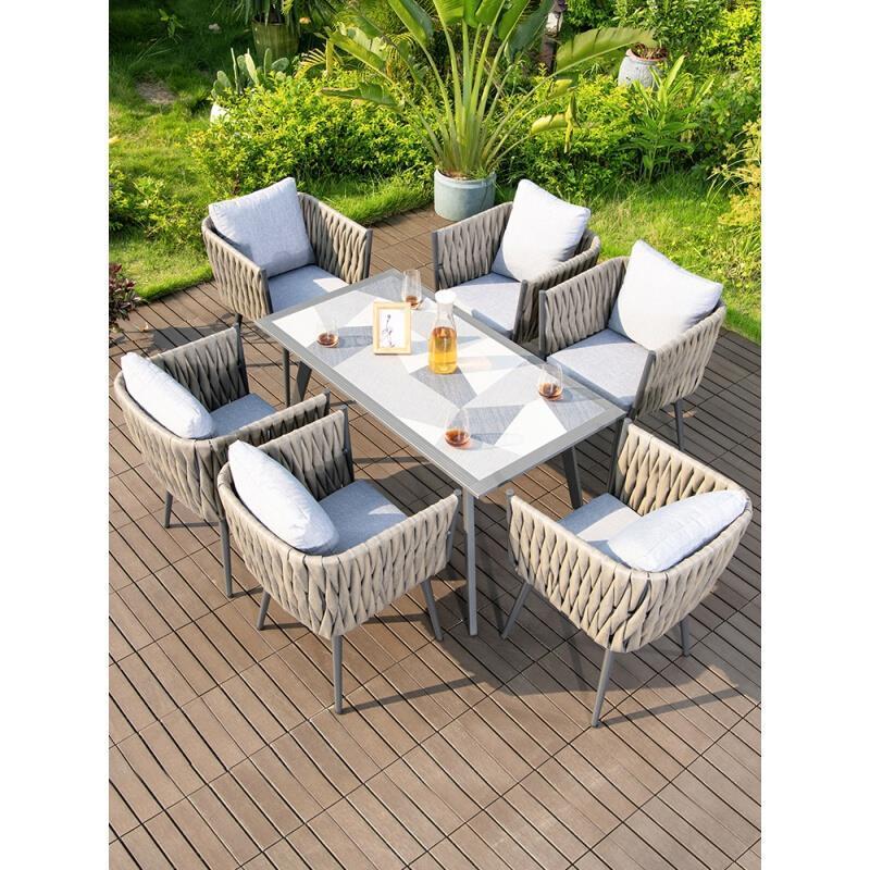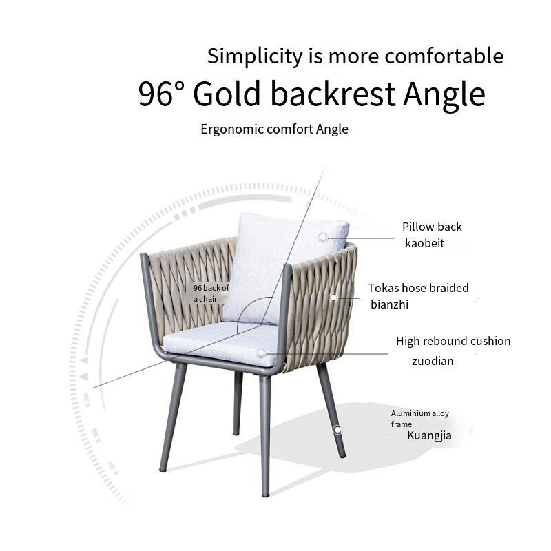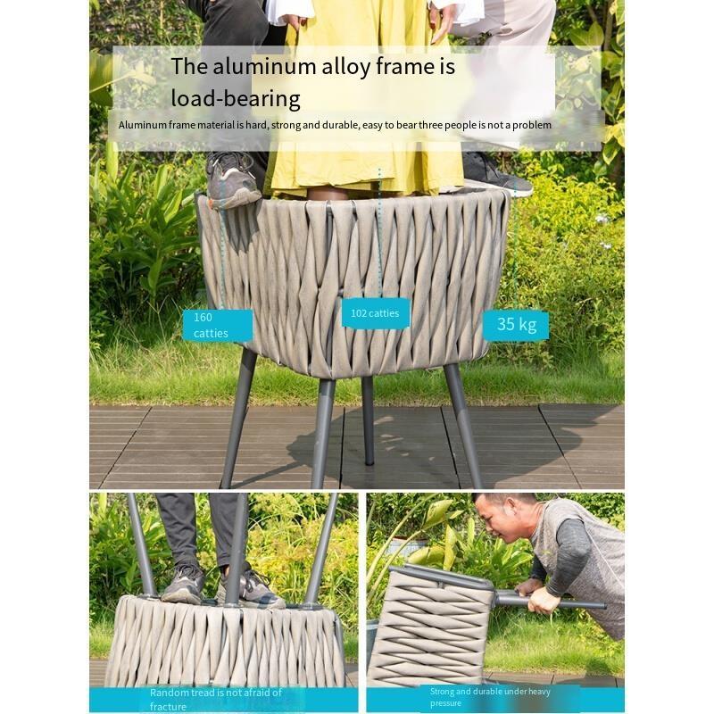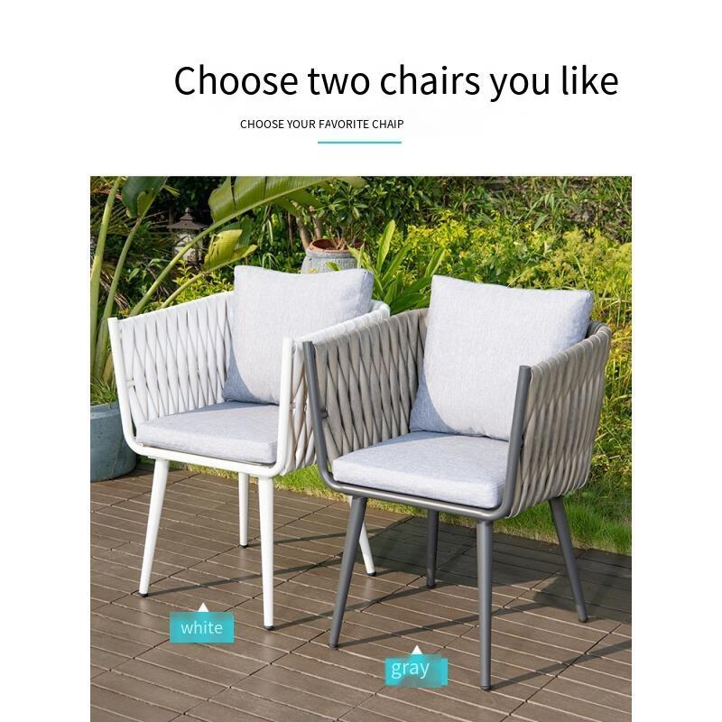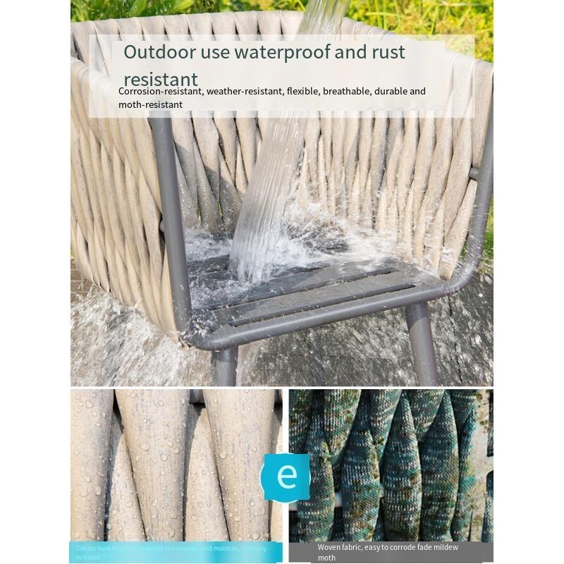Nordic Outdoor Table And Chair Combination Waterproof Sunscreen Balcony Courtyard Chair 4 Chair + 90cm Striped Rock Board Round Table