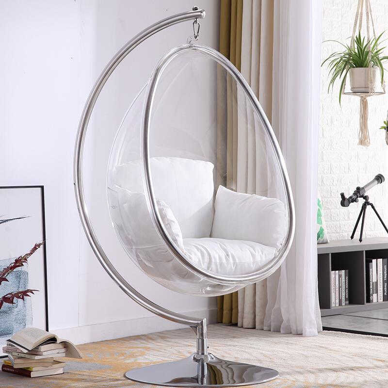 Nordic Wind Net Red Glass Ball Transparent Bubble Chair Hemispherical Hanging Chair Space Chair Acrylic Hanging Basket Round Cushion And Lighting