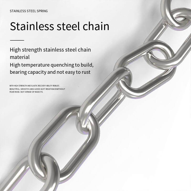 High-strength stainless steel chain material is made of high temperature quenching, strong load-bearing capacity and not easy to rust