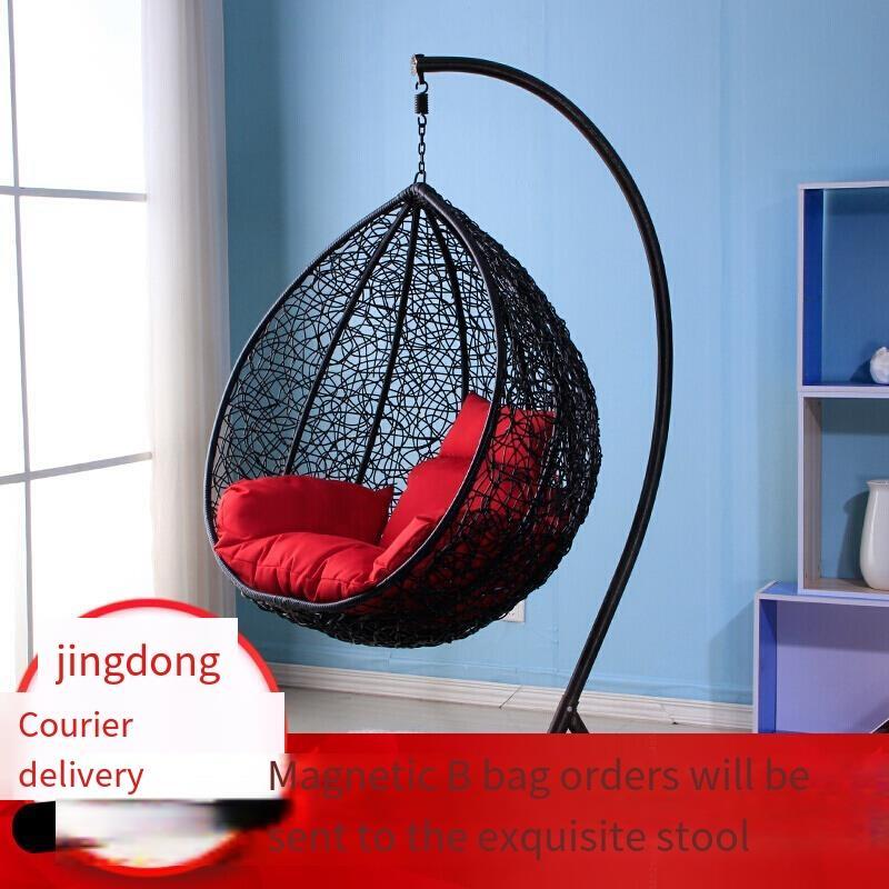 Outdoor Balcony Hanging Chair Large Basket Indoor Outdoor Balcony Swing Bird's Nest Single Rocking Chair Hammock Black Red Cushion