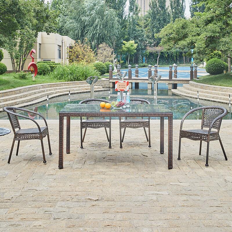 Outdoor Balcony Table And Chair Rattan Chair Combination Courtyard Tea Table Rattan Chair Charm Coffee 4 Chair + 80 Square Table