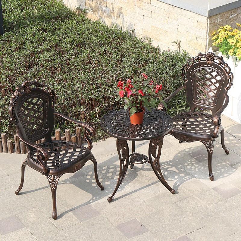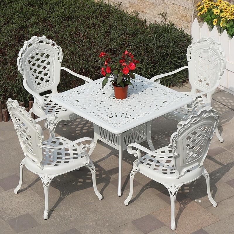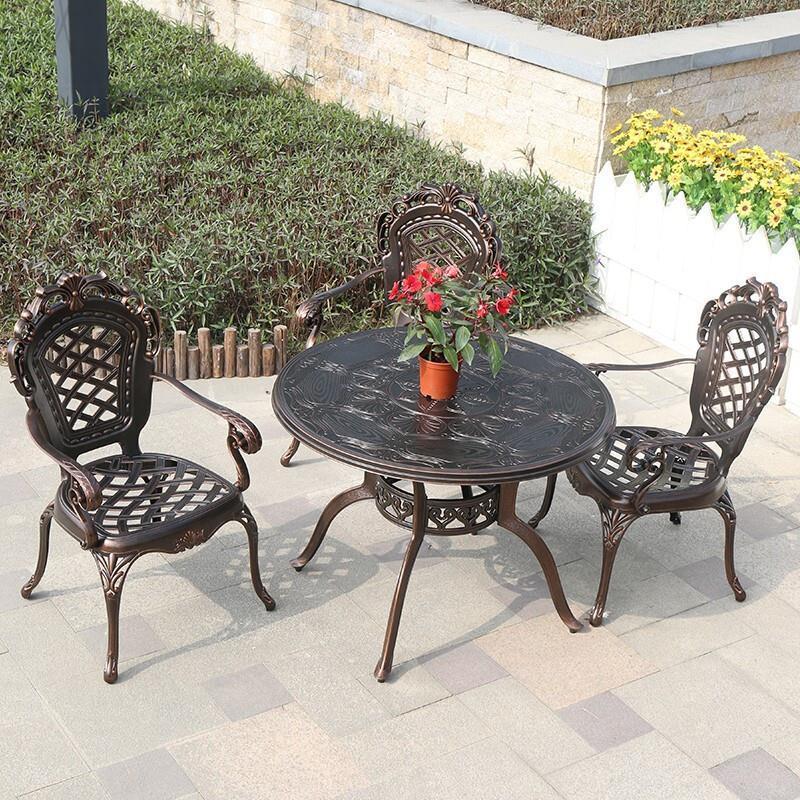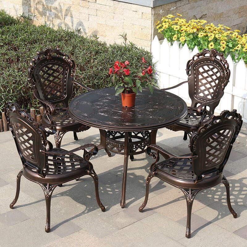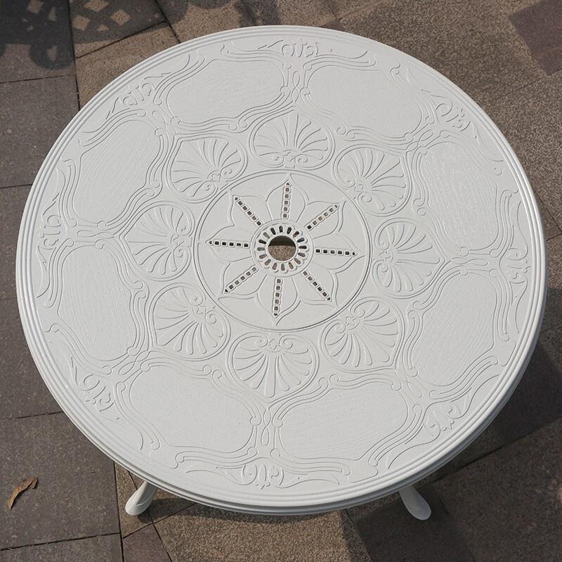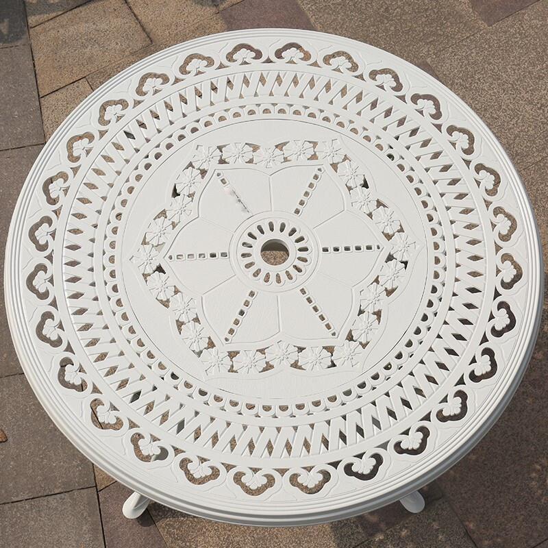 Outdoor Cast Aluminum Table Chair Courtyard Garden Villa Balcony Iron Art Leisure Waterproof And Sunscreen Simple European Style Three Or Five Piece Set Simple Combination 4 + 1 Combination 100cm Diameter Orchid Round Table (white)