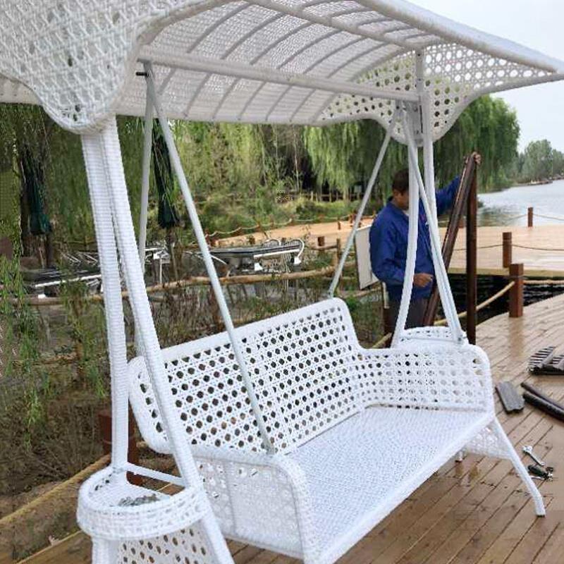 Outdoor Courtyard Imitation Rattan Iron Swing Chair Hanging Double Three Person Garden Villa Terrace