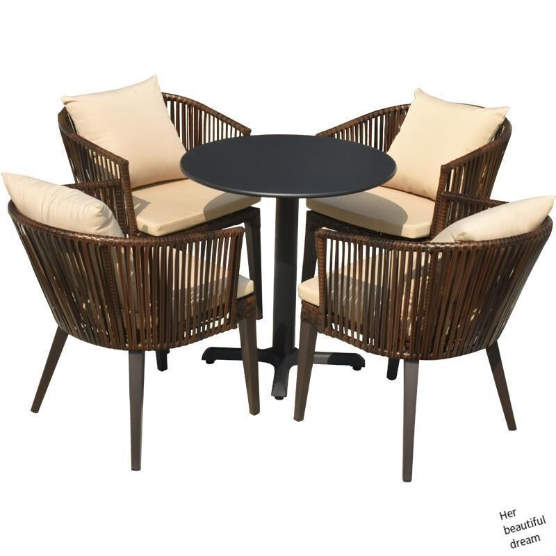 Outdoor Courtyard Rattan Chair Leisure Balcony Table Chair Sunshade Umbrella [4 Chairs 80 Plastic Wood Square Table Roman Umbrella]