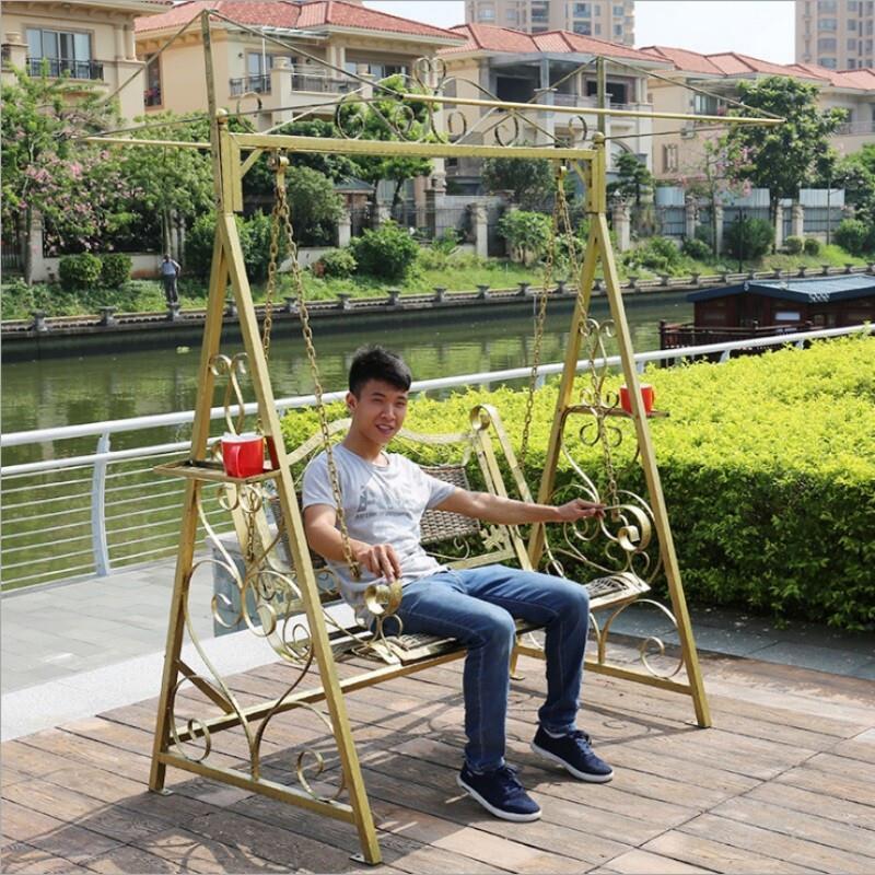Outdoor Double Swing Chair Children's Swing Hanging Chair Courtyard Adult Cradle White Vertical Grain Iron