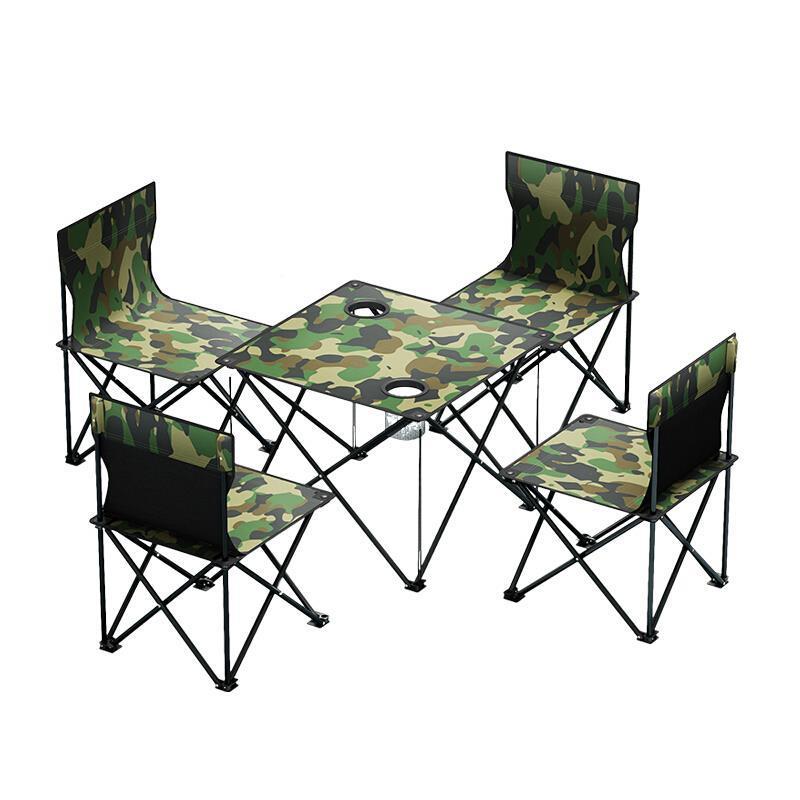 Five Piece Set Camouflage Outdoor Folding Table And Chair Set Portable Self Driving Travel Camping Picnic Balcony Table And Chair Combination