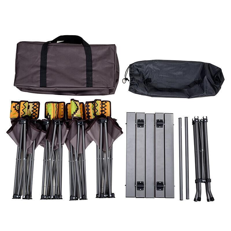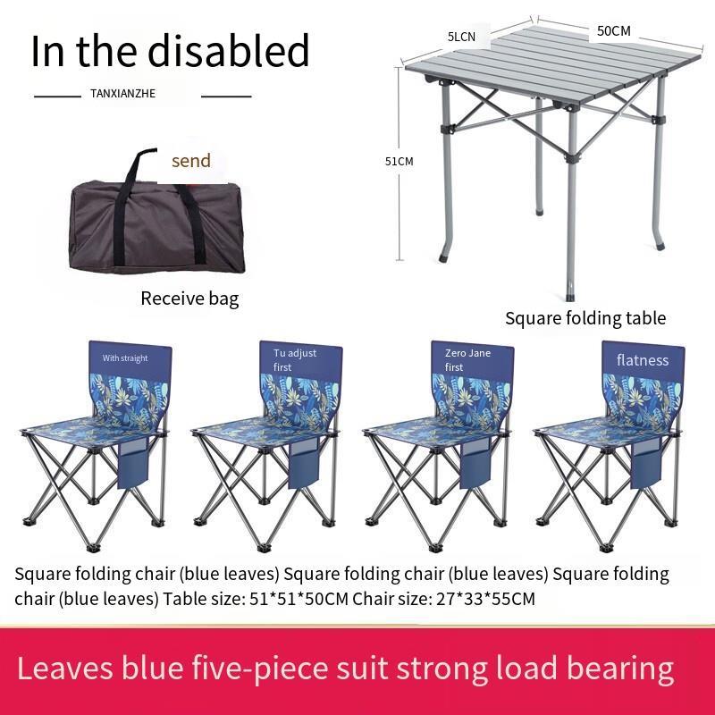 Outdoor Folding Table And Chair Set Portable Aluminum Alloy Camping 5-piece Set Self Driving Car Barbecue Leaf Blue 5-piece Set