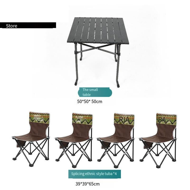 Outdoor Folding Table And Chair Set Portable Picnic Camping Stall Table Ethnic Style Small Table Five Piece Set