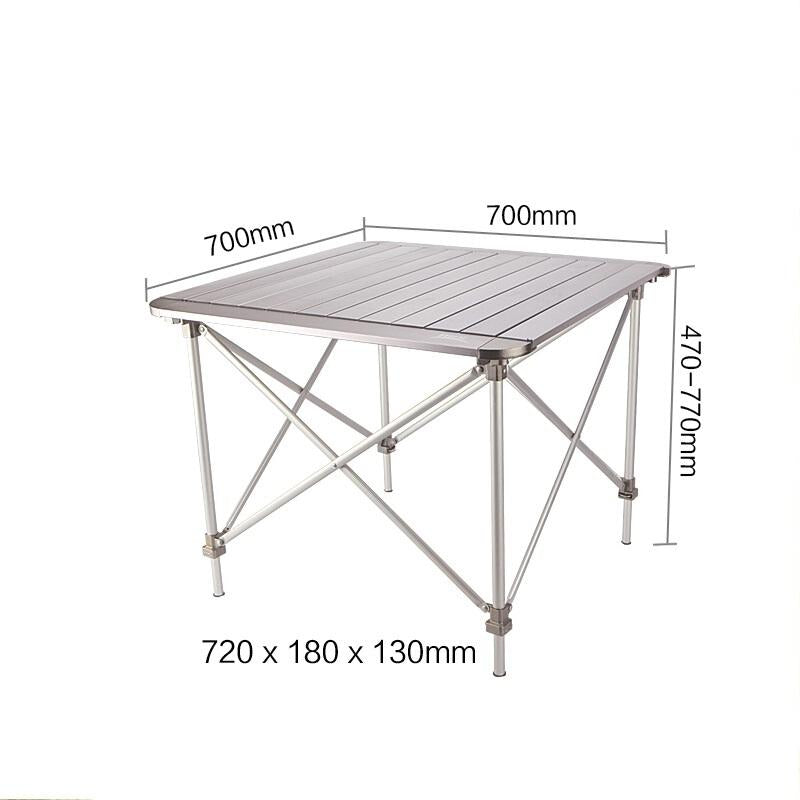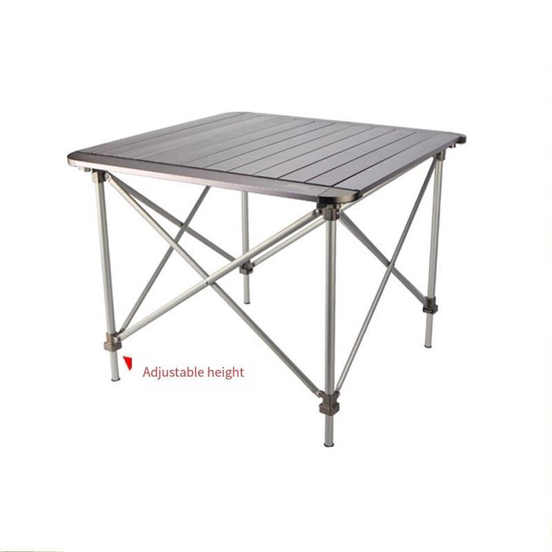 Liftable folding single table This product is made of all aluminum alloy, strong and light. The table top treated with special process is beautiful and easier to clean and effectively prevents the table top from scratching. All connections and stress parts are made of high-strength aluminum alloy. Thoroughly avoid the joints from breaking and deforming during use. The support frame is composed of 4 main pipes and 8 auxiliary pipes, which greatly increases the firmness and stability of the table, and makes disassembly and assembly more convenient. It is suitable for car travel, camping picnic, leisure office A must-have product.