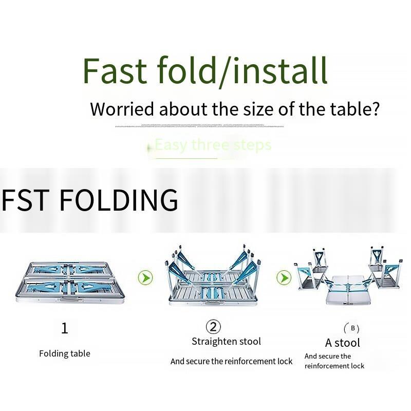 Outdoor Folding Tables And Chairs Siamese Exhibition Table Beach Stall Portable Integrated Barbecue Stall Four Person Seat Suit Camping Picnic Tables