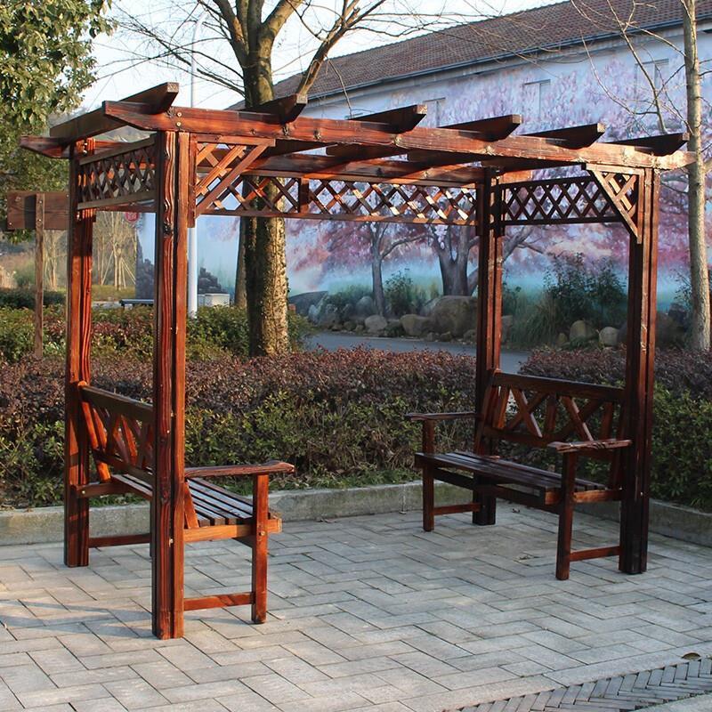 Outdoor Pavilion Antiseptic Wood Grape Trellis Courtyard Garden Leisure Table Chair Combination Solid Wood Climbing Vine Trellis Pavilion 300 * 170cm