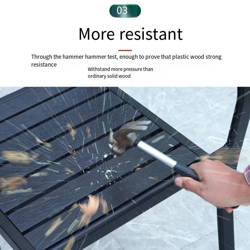 Outdoor Plastic Wood Table And Chair Villa Outdoor Courtyard Garden Leisure Balcony Table And Chair Combination 4 Armchair +1 Square Table 80cm