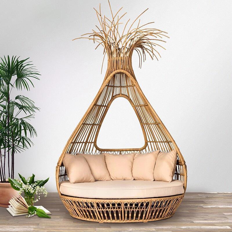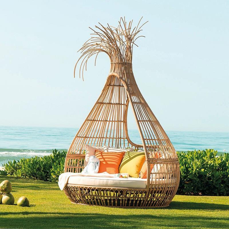 Outdoor Reclining Bed Bird's Nest Bed Balcony Bird's Cage Villa Swimming Pool Outdoor Courtyard Reclining Chair Rattan Chair Rattan Woven Bird's Cage Bed Straw Bird's Nest 200cm