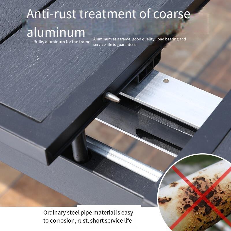 Outdoor Retractable Tables And Chairs Courtyard 6 People Leisure Outdoor Roof Anticorrosive Wood Plastic Garden 8 Chairs + 180cm (expanded 240cm) Retractable Long Table