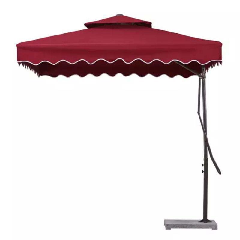 Outdoor Sunshade Courtyard Umbrella Large Security Guard Box Umbrella Wrench Umbrella 2.2m Square Wine Red With Marble Base