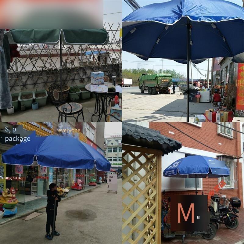 Outdoor Sunshade Umbrella Large Outdoor Commercial Stall Umbrella Advertising Umbrella 2 M Blue And White Three Layer Frame Without Base