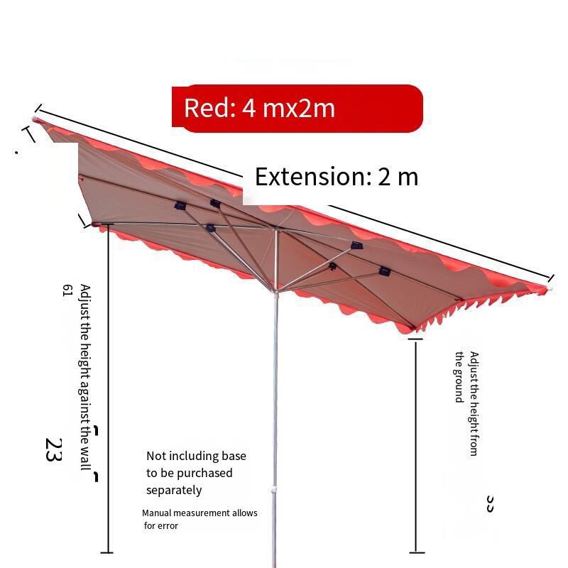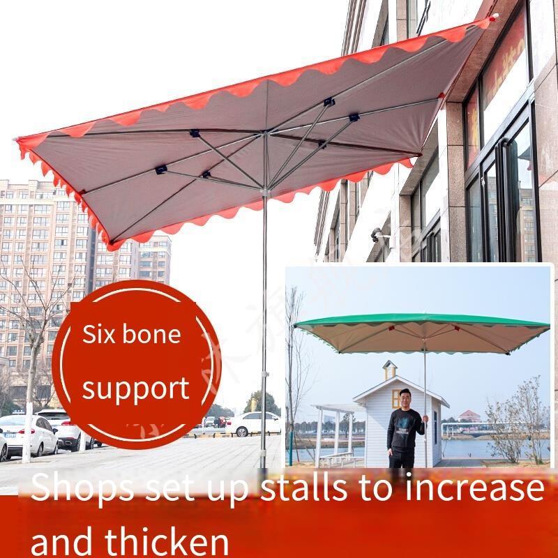 Outdoor Sunshade Umbrella Canopy Stall Large Rainproof Folding Large Square Sun Umbrella Thickened Inclined Shop Commercial Inclined Six Bones 4 × 2 Red