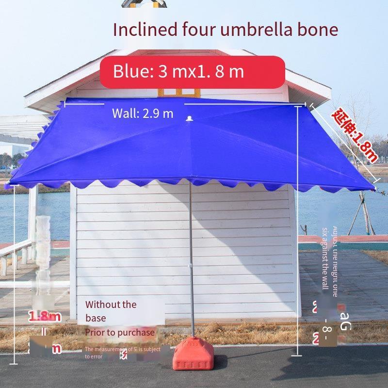 Outdoor Sunshade Umbrella Courtyard Inclined Large Stall Square Sun Thickened Sunscreen And Rainproof Commercial Inclined Blue Four Bone 3 × 1.8