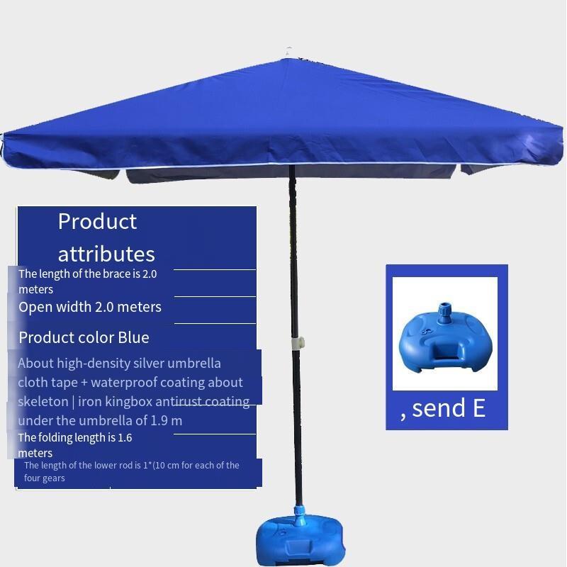 Outdoor Sunshade Umbrella Large Stall Sun Ground Stall Beach Booth Square Commercial Folding Advertising Umbrella Outdoor Courtyard Umbrella Sunscreen Tent Assembly Free Blue 2.0 × 2.0