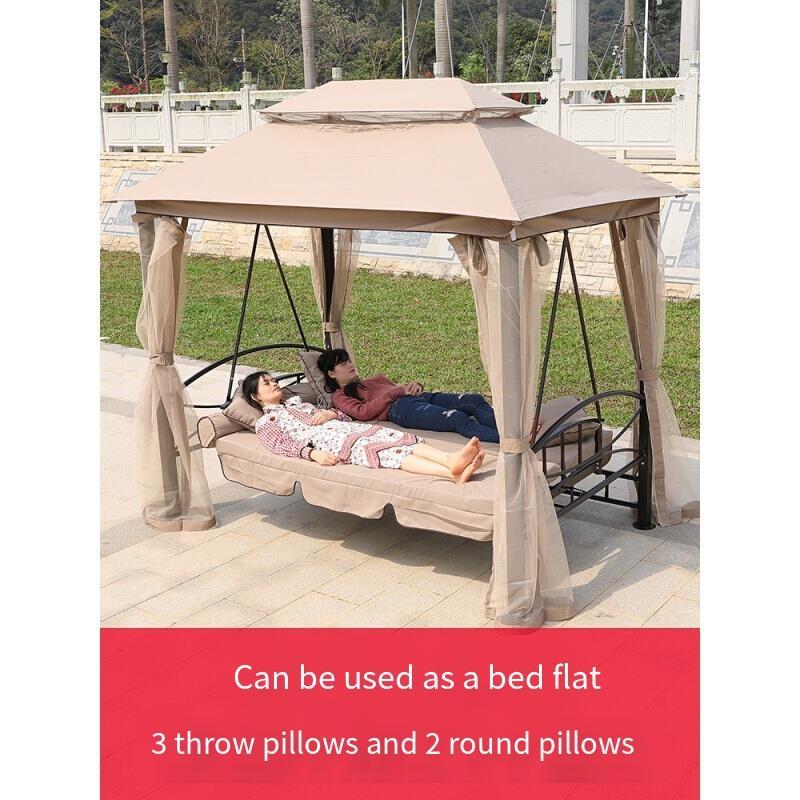 Outdoor Swing Hammock Courtyard Terrace Rocking Chair Single Reclining Balcony European Double Reclining Bed Upgrade Top Reinforced Tent Swing [gauze Curtain + Cushion, Cushion + Pillow]