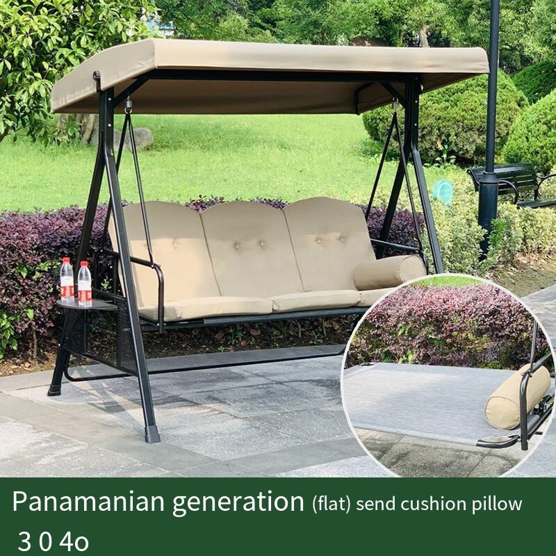 Outdoor Swing Hanging Chair Courtyard Double Rocking Iron Inner Basket Rattan Balcony Household Khaki Panama Third Generation (three Person) Dual-purpose Model