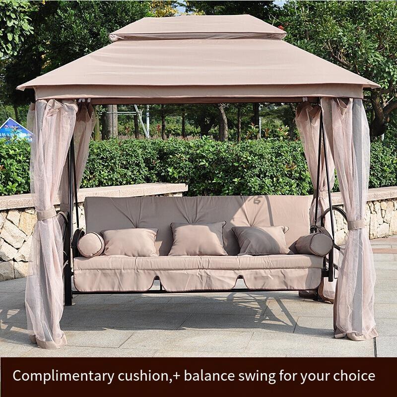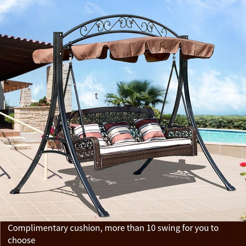 Outdoor Swing Hanging Chair Iron Rocking Chair Garden Iron Outdoor Balcony Courtyard Rattan Herringbone Three Person Swing Part Of The Free Cushion